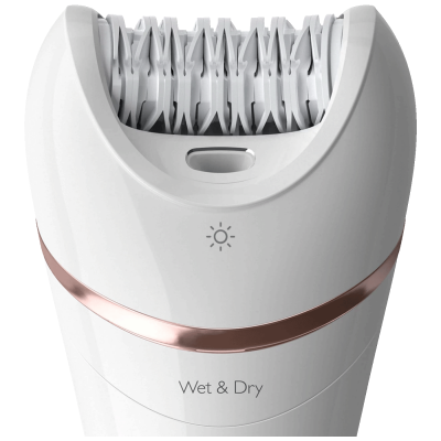 Široka glava epilatora uklanja više dlačica po potezu, dok ergonomična S-oblika drška omogućava preciznu kontrolu i lakoću rukovanja. Ugrađeno svetlo (Opti-light) otkriva i najsitnije dlake, a zahvaljujući Wet & Dry funkciji bez problema ga koristiš i u kadi ili tušu.