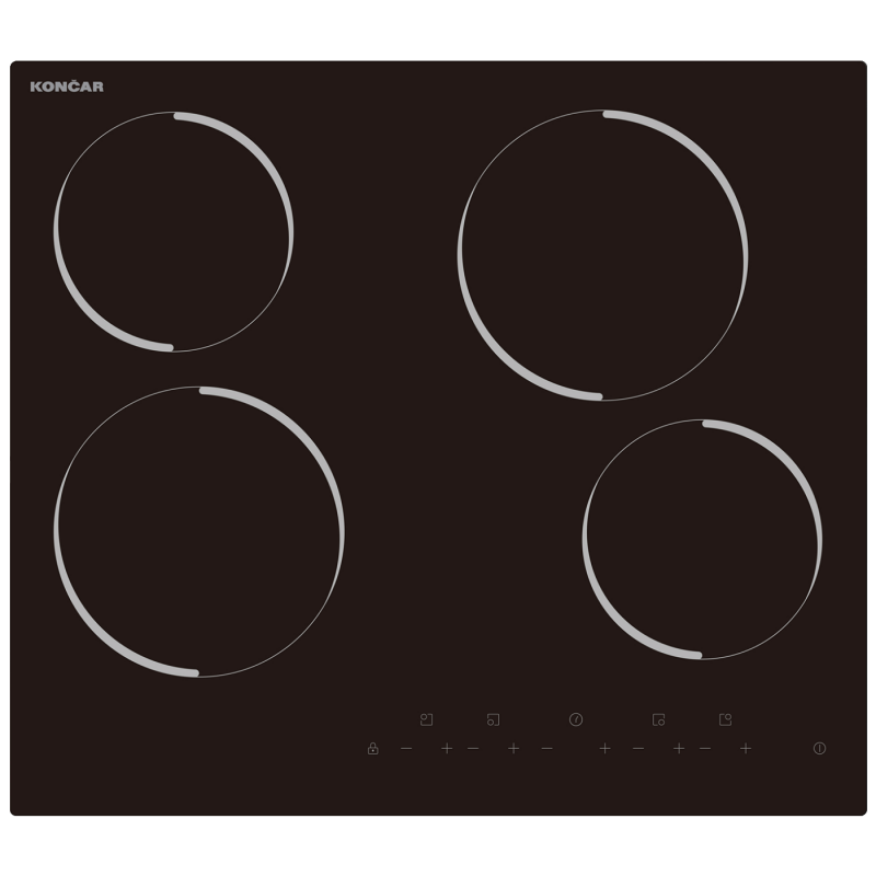 • Ploča UK604KMK: 4 zone, područja Ø20 cm (1,8 kW) + Ø16,5 cm (1,2 kW)
