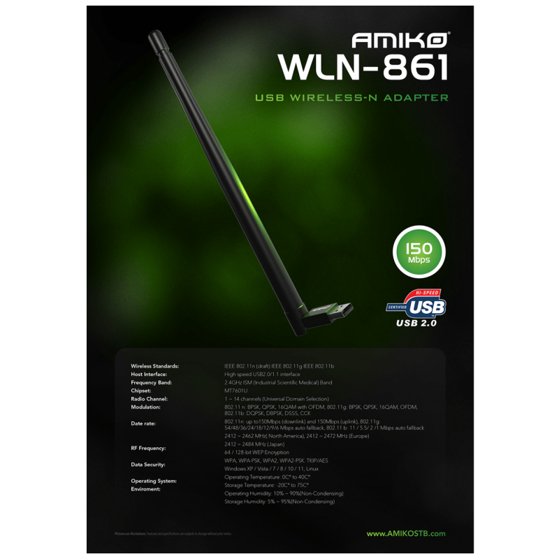 Brzi pregled Amiko Wi-Fi mrežna kartica, USB, 2.4 GHz, 5 dB,... 28,00 KM Dodaj u korpu Dostupnost: 21 Na skladištu Garancija 12 mjeseci