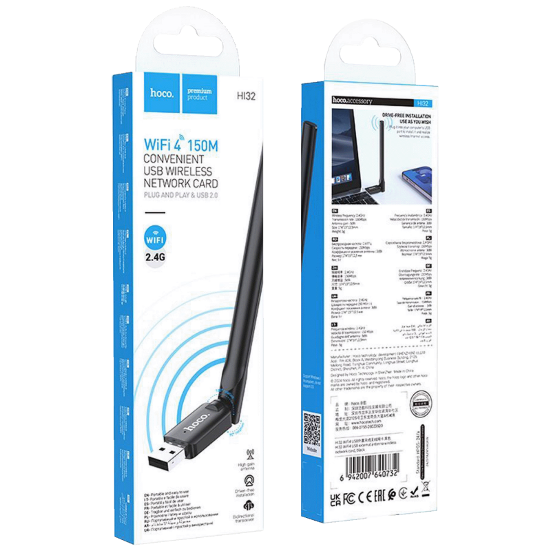 HOCO HI32 je kompaktna mrežna kartica koja omogućuje brzo i stabilno povezivanje na bežičnu mrežu.