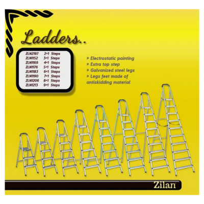 Metalne ljestve s tri gazišta idealne su za kućanstvo. Ljestve karakteriziraju međusobno povezana gazišta protuklizne plastične kapice na nogama, što daje sigurnost pri upotrebi ljestava. Sklopive su te se lako mogu skladištiti i ne zauzimaju puno prostora. Pristup jednostrani, anitstatički premaz
