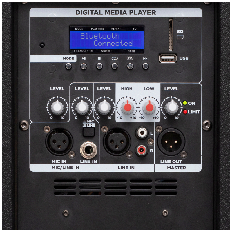 SAL PAP43BT opremljen je raznim opcijama ulaza, uključujući MIC XLR, LINE1-2 XLR/6,3 mm/2xRCA ulaze, kao i LINE XLR izlaz.